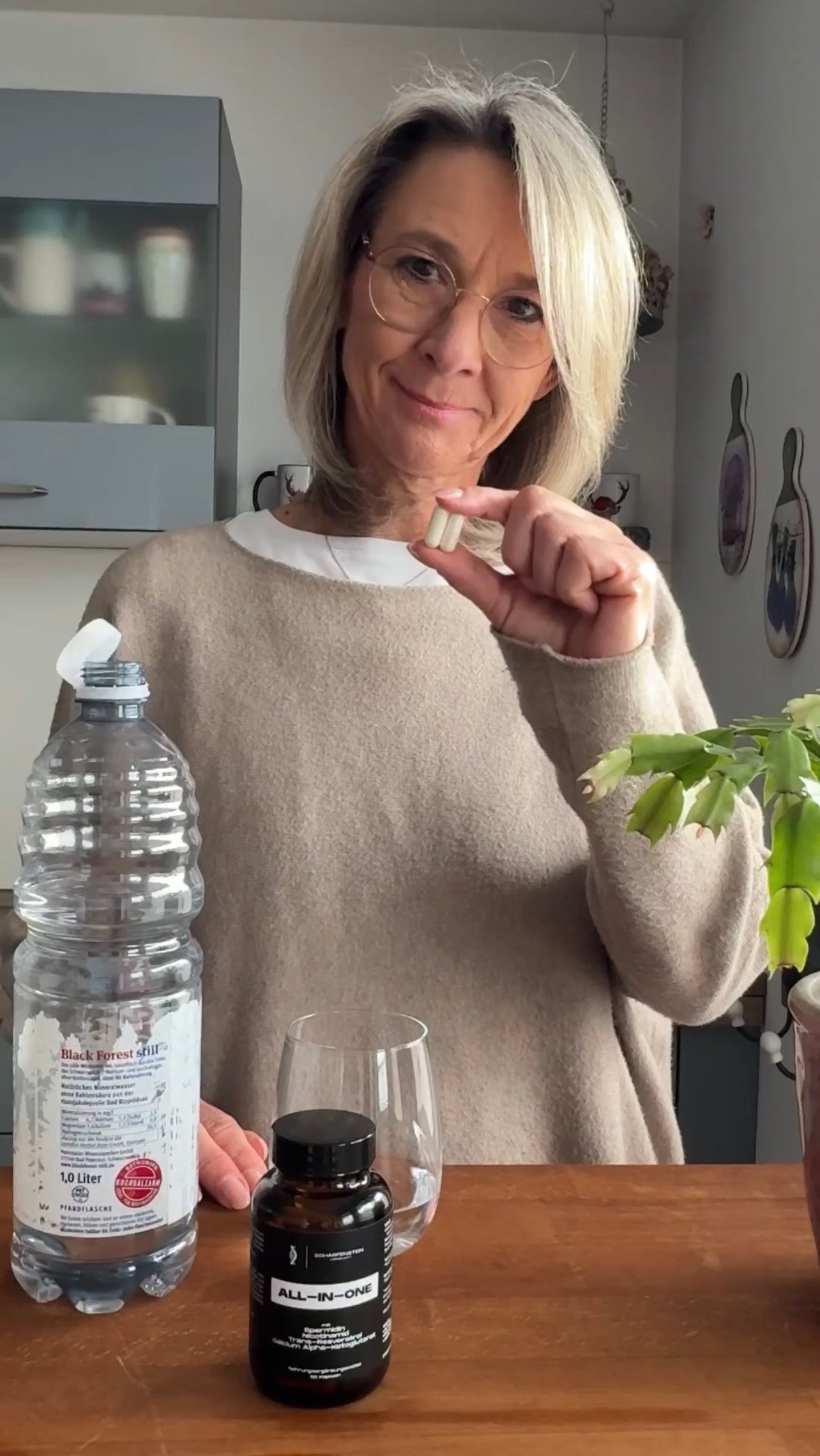 Spermidin 4 mg, 150 mg Trans-Resveratrol , 300 mg Nicotinamid, 750 Calcium-Alpha-Ketoglutarat.